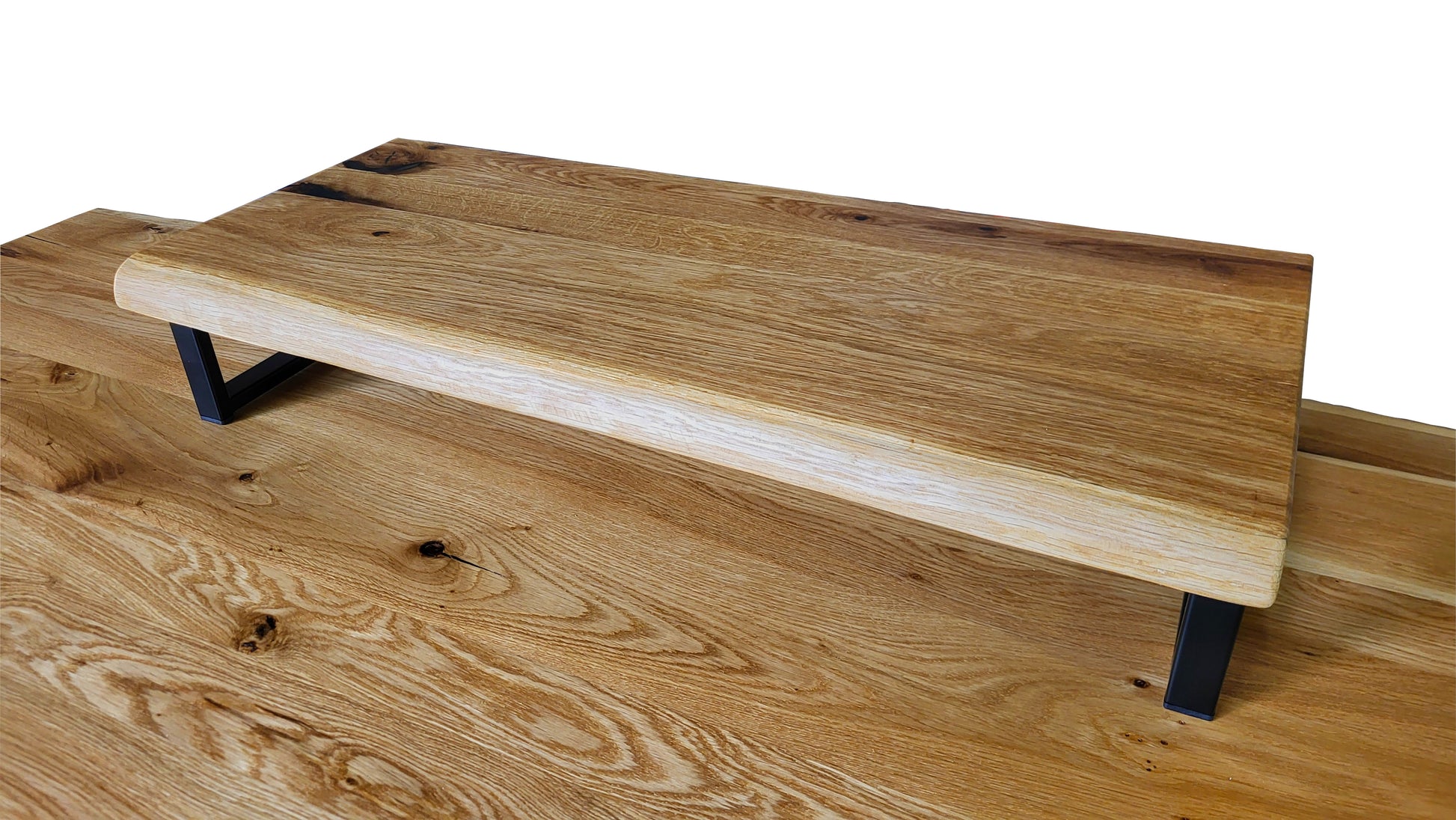 - Holzart: Eiche mit Waldkante (stabverleimt) & Buche oder Stahl